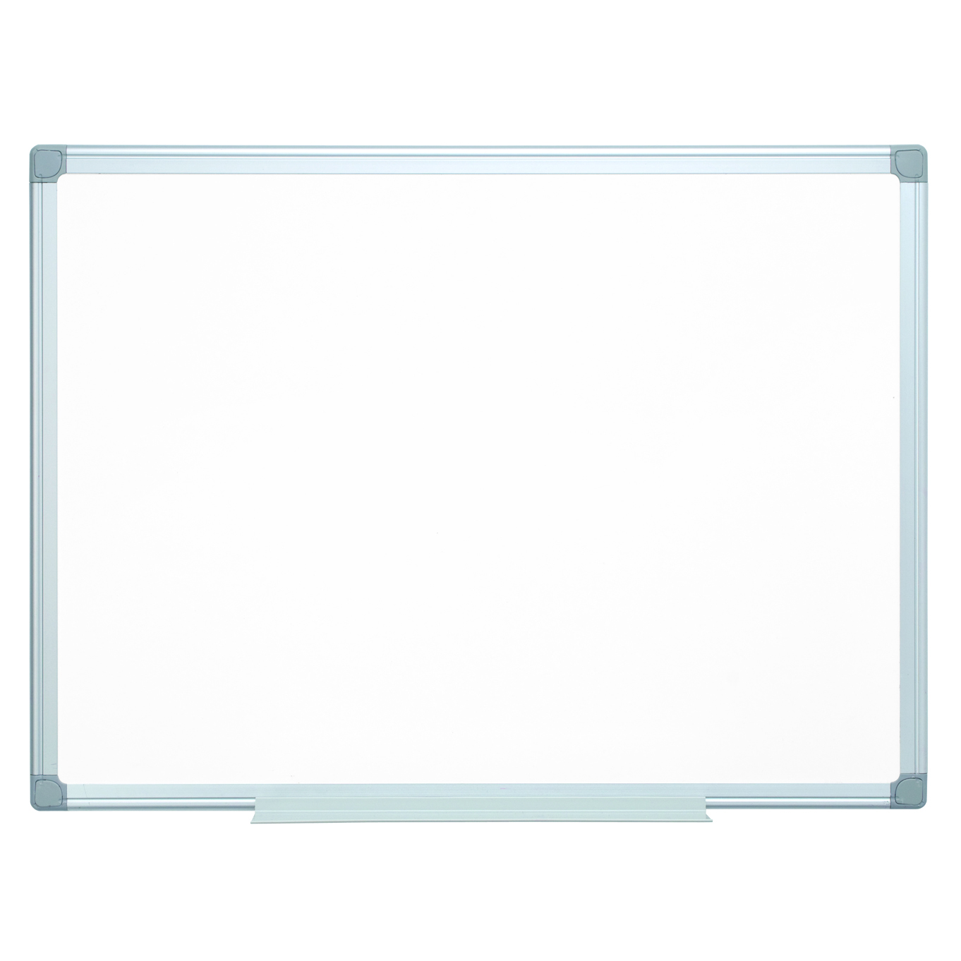 Q-Connect Slimline Drywipe Board with the new Ayda Aluminium frame. Magnetic, easy to clean board with profiled corners and concealed wall mountings. Pen tray supplied. Size: 1200X900mm (4FTx3FT).