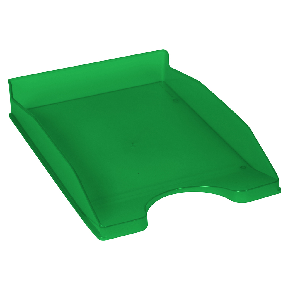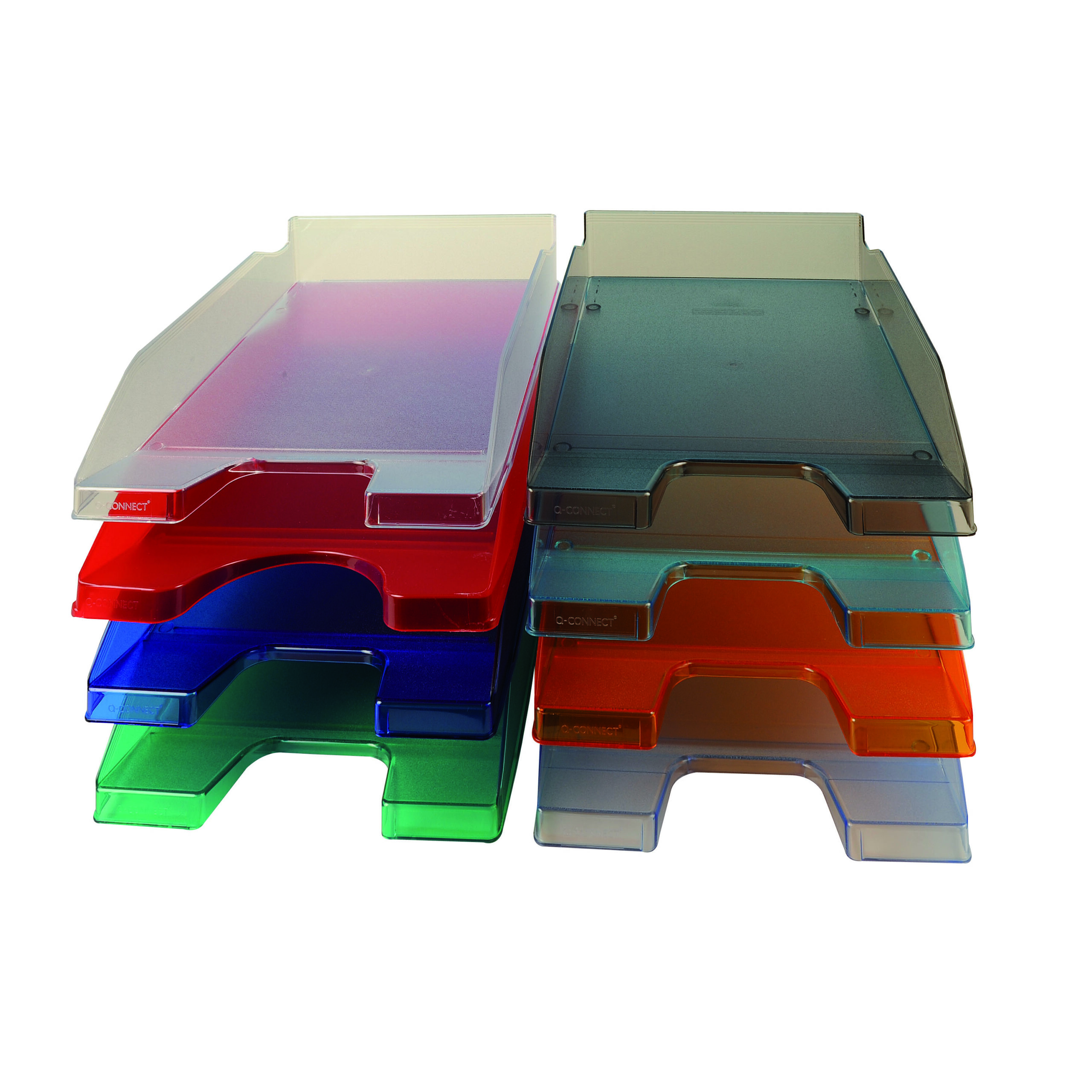 COMMERCIAL INFORMATION:Q-Connect translucent Letter Tray. The high quality stackable Letter Tray is made of thick, rigid Polystyrene and has 2 label holders on the front. Dimensions: 345 x 255 x 60mm. Colour: Translucent Green.