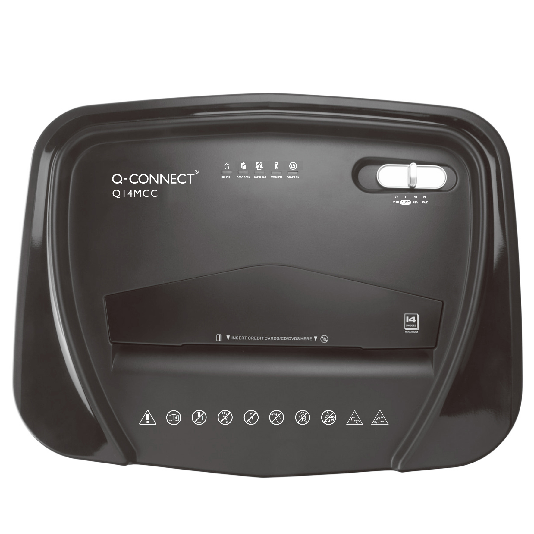 Mini Cross Cut shredder Q14MCC UK-plug, max 14 sheets, 18.9L bin, CD & credit card shredding - 366 x 280 x 491mm