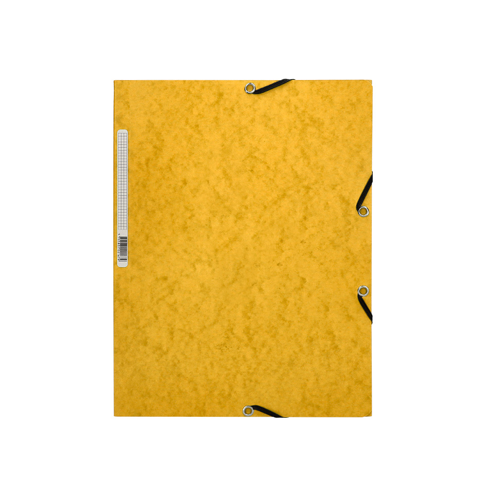 Manilla Tri-Flap Files A4, 375gsm, Yellow glossy cardboard with Black elastics - shrink of 10