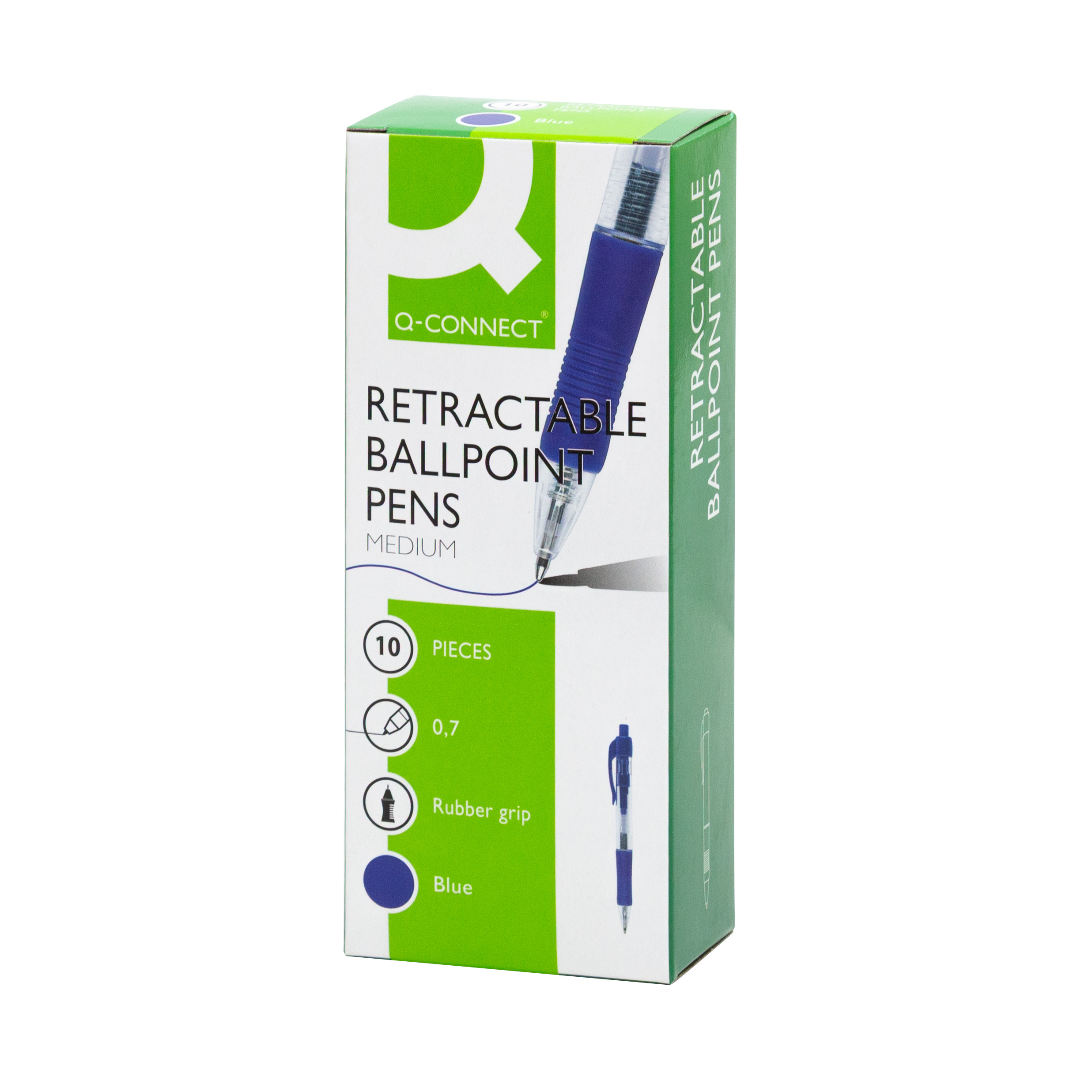 Retractable ballpoint pen with rubber grip, 1.0mm tip, Blue, extended writing length - Box of 10
