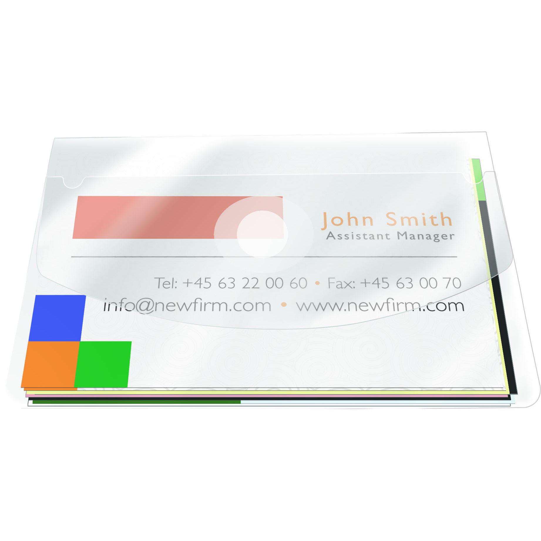 Self-adhesive business card pockets, long side open with flap, 60 x 105mm - Polybag of 10