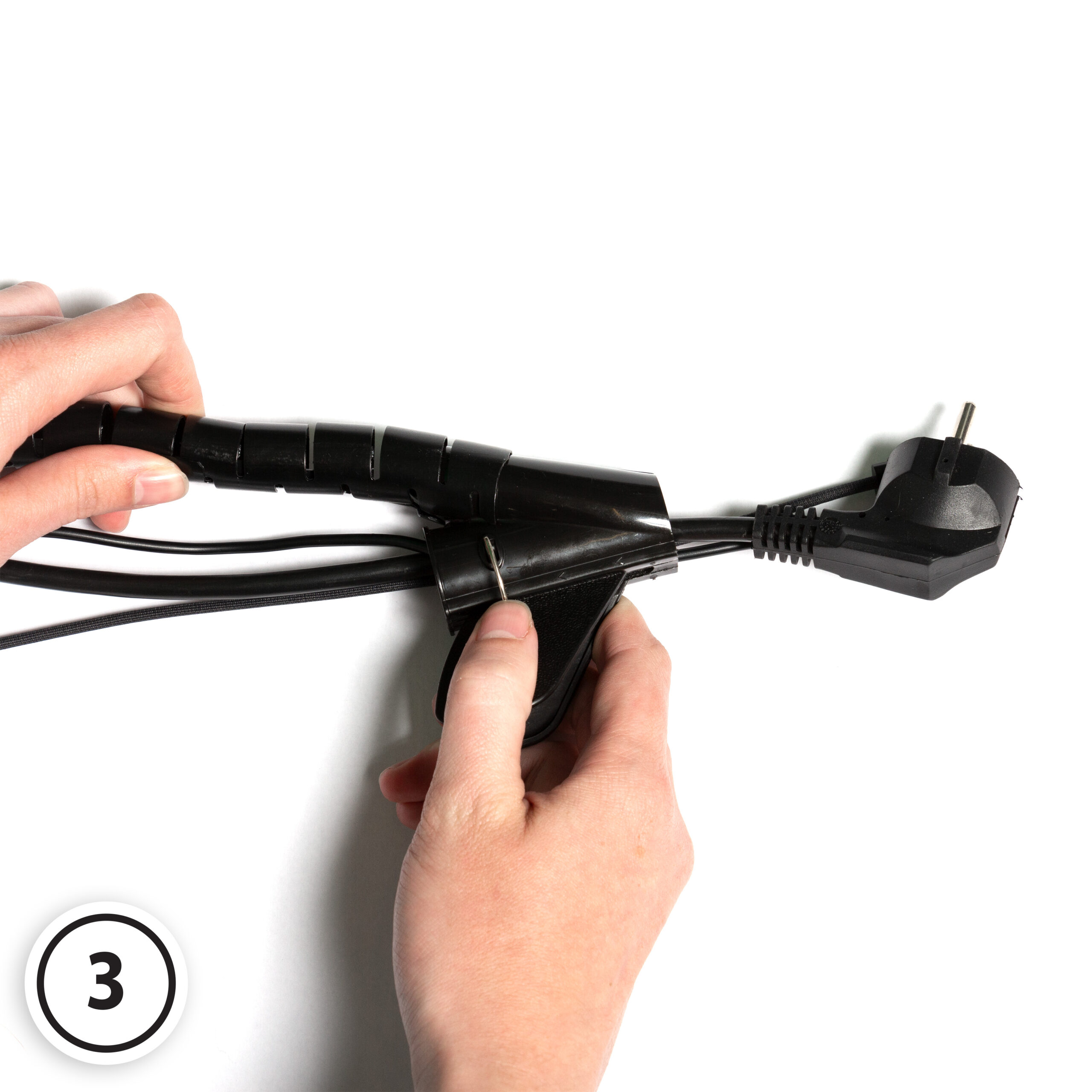 COMMERCIAL INFORMATION:Q-Connect spiral cable wrap. Easy to use, wraps around your cables up to 20mm in diameter. This cable organizer tube is perfect for all cable bundling management in your home room, cinema theater or office. Protects the wires from being trampled, or from pet's bite, as well as protecting people or pets from electric shock. The spiral tube also prevents dust buildup around your cables. You can easily insert or remove your cables at each individual port in the spiral tube, ideal for solving cable tangle. Use the included cable guiding tool for easy installation. Can be cut at the desired length, and the cut cross section will not be sharp, due to the soft PE material. The flexible spiral sheath can be rotated at any angle without damaging your cables. This pack contains a 2,5m long Black spiral cable wrap tube with 20mm diameter.