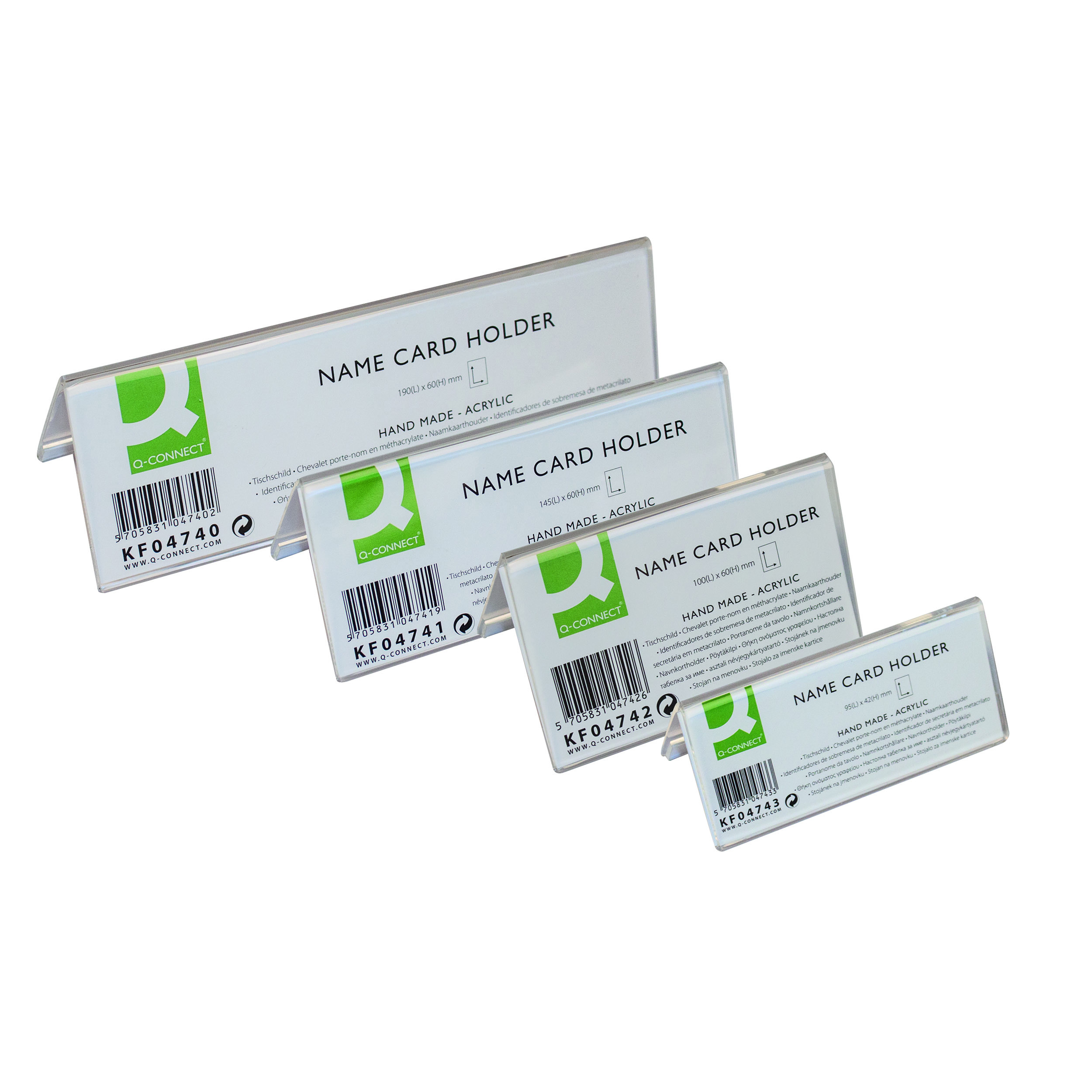 COMMERCIAL INFORMATION:Q-Connect Name card holder. Ideal to place on tables, desks or at the reception. Name card with dimensions 10 x 6,1cm can be inserted. Traditional sturdy V-shape design.