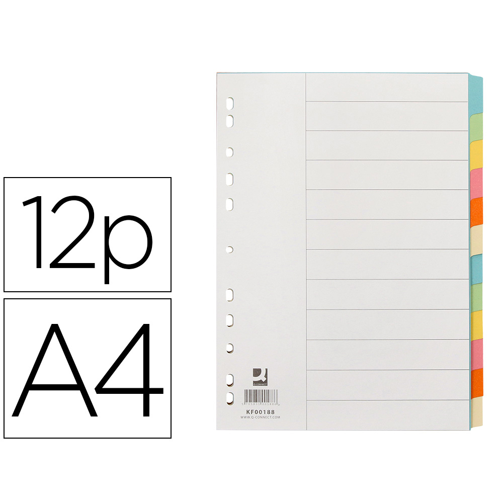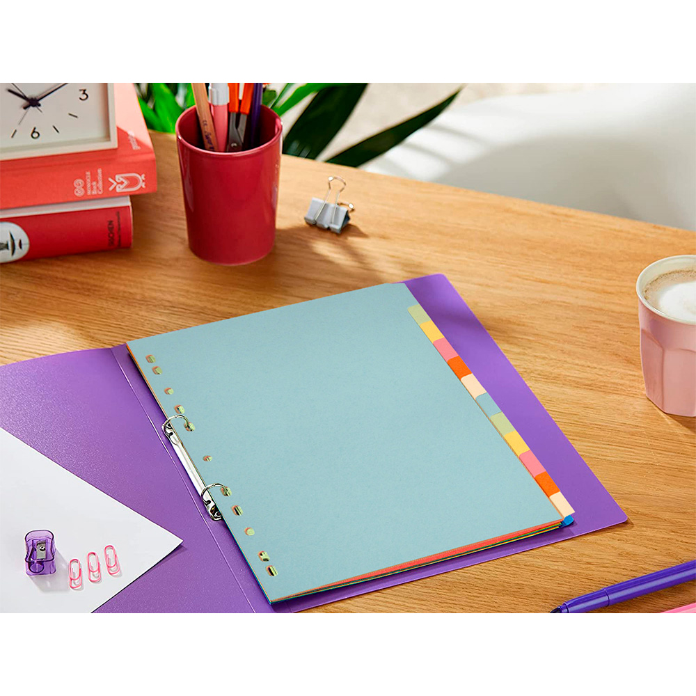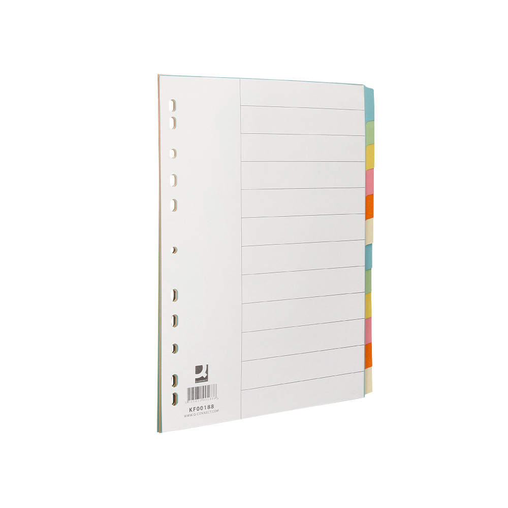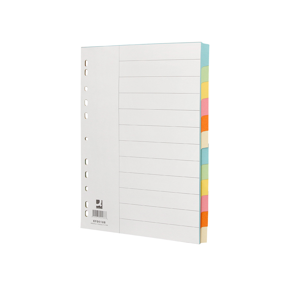 Manilla divider A4 11 holes, 175g, 12 blank pastel coloured tabs, index sheet
