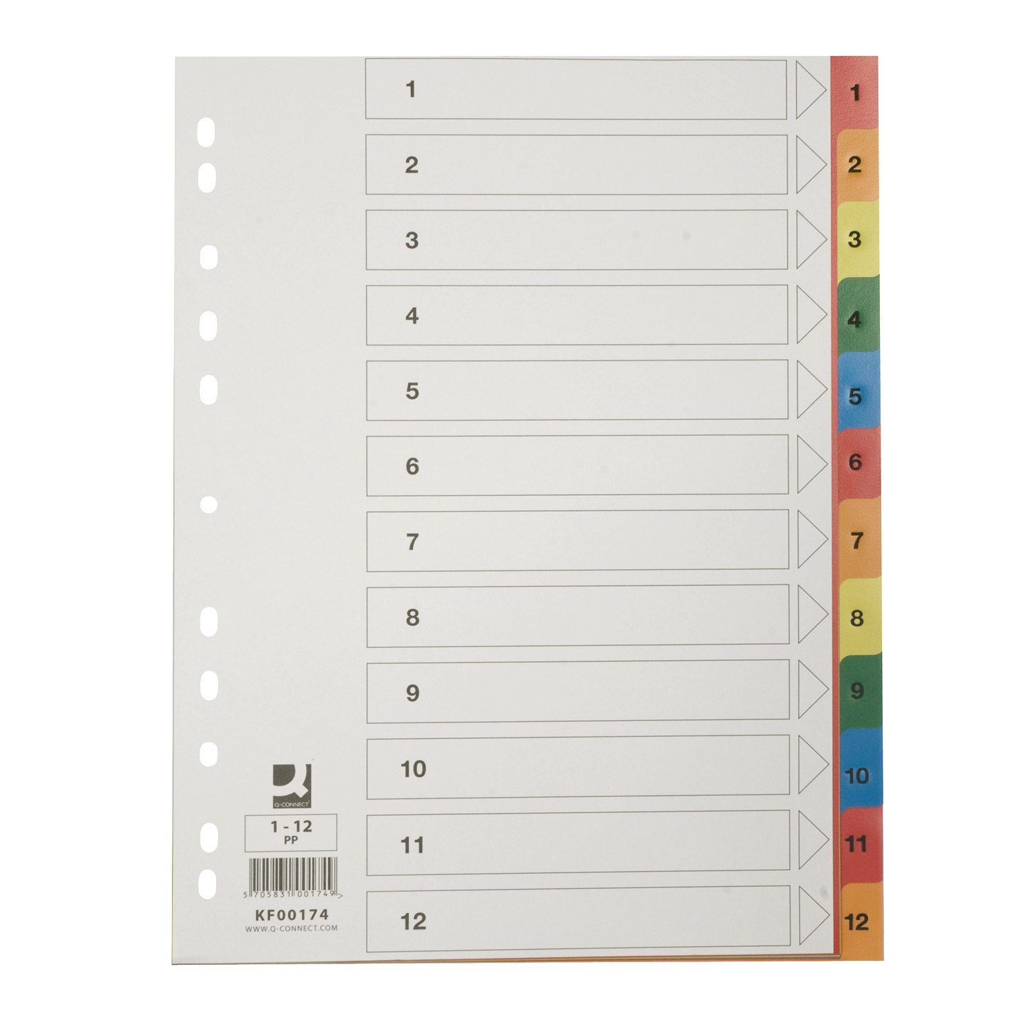 Coloured PP divider A4, 1 – 12