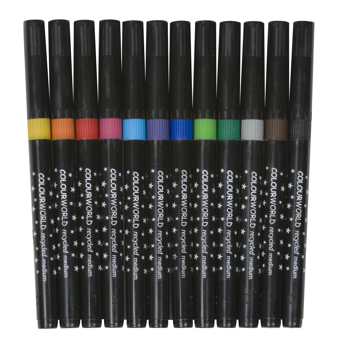 Medium Fibre tip pens, 80% recycled plastic - Wallet of 12 assorted colors