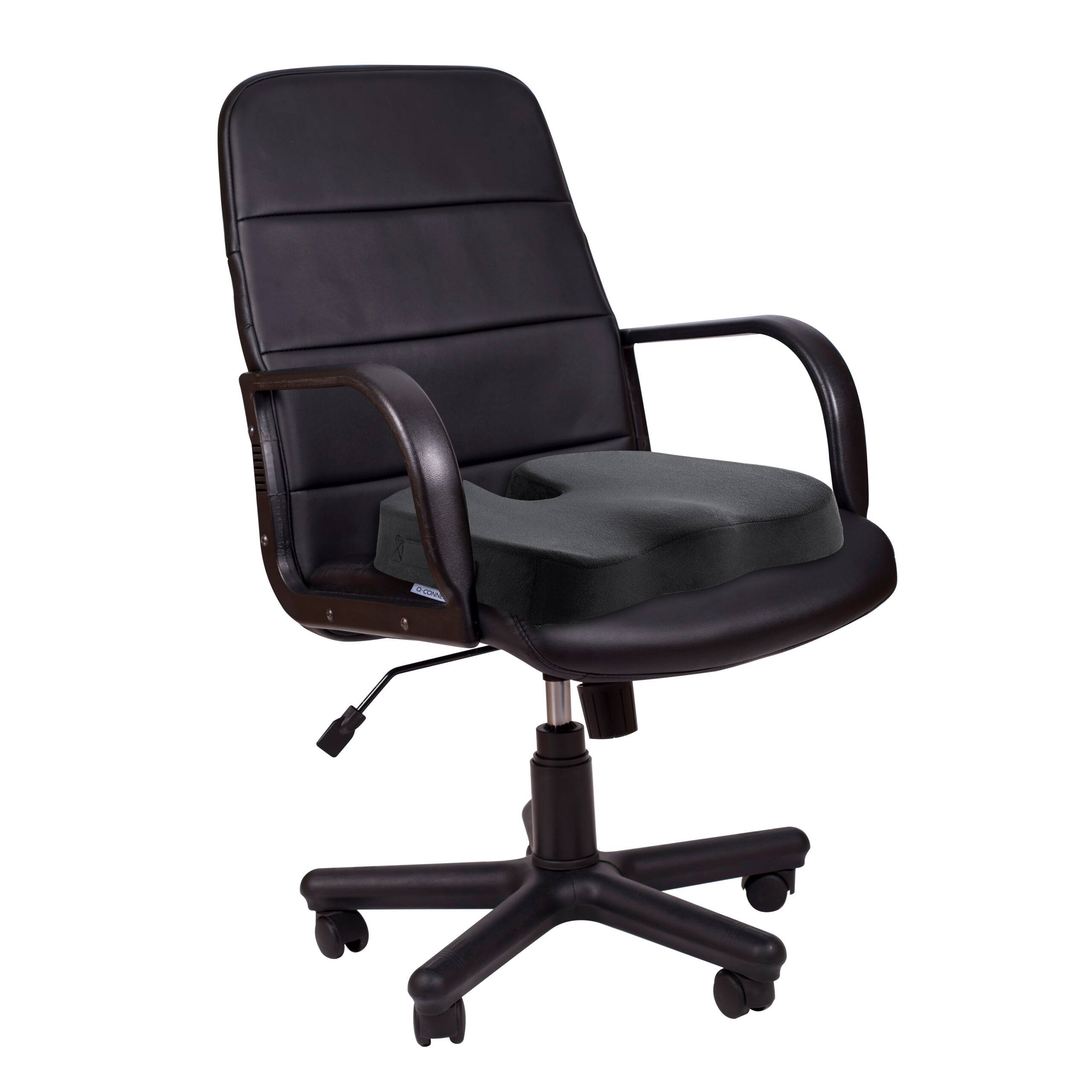 COMMERCIAL INFORMATION:Q-Connect memory foam seat cushion for your office chair. The seat cushion has a PU core and is covered with Polyester fabric. It has a built-in handle and anti-slip bottom design.