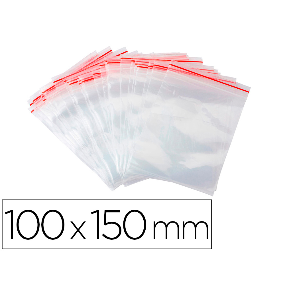 COMMERCIAL INFORMATION:Easy re-sealable Q-Connect Grip bags. The transparent and easy re-sealable grip bags have a red line and euroslot above the seal. They are ideal for storage and easy access of small office supplies or even food. Bag dimensions: 100x150mm. Bag thickness: 50 micron.