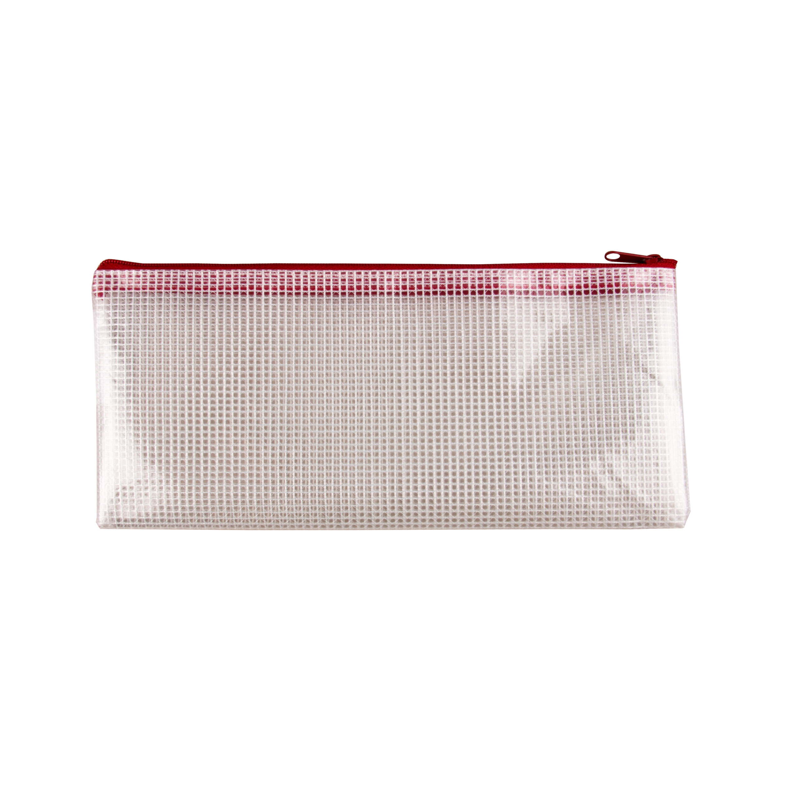 Cheque size reinforced mesh Zipper Bag with red zipper, 250mic - Polybag of 8