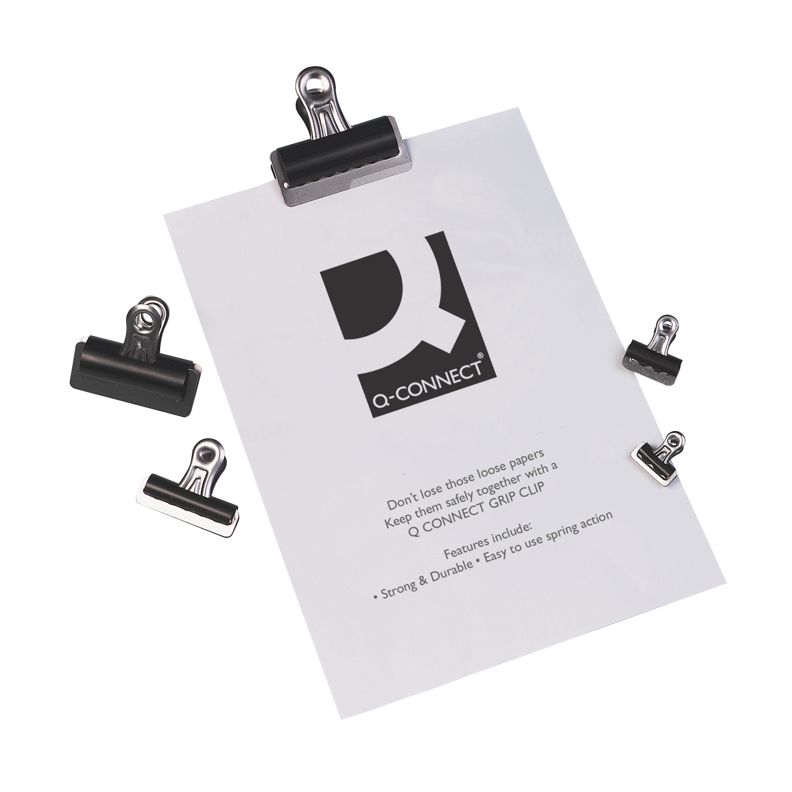 COMMERCIAL INFORMATION:Q-Connect grip clip for secure fastening of documents. Strong clip ensures that your papers are always secured. Strong steel construction ensures durability. Sheets can be reorganised with ease. Size: 70mm. Colour: Black.