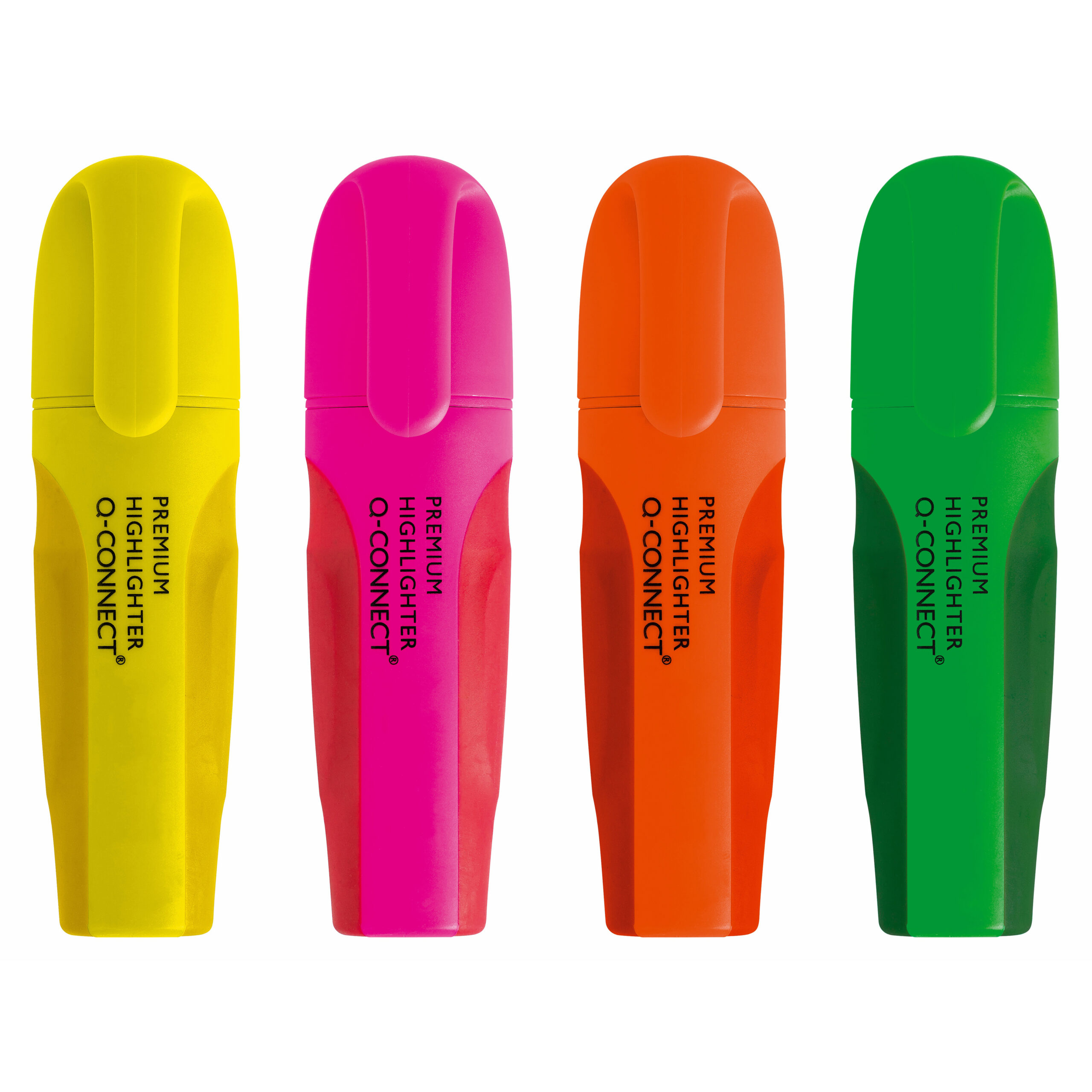 COMMERCIAL INFORMATION:Premium highlighter pens with rubber grip for emphasising important information. For vibrant yet clear highlighting. Suitable for most types of paper without fading. Great for controlled and precise highlighting. 4 assorted ink colours: Yellow, Pink, Orange, Green.
