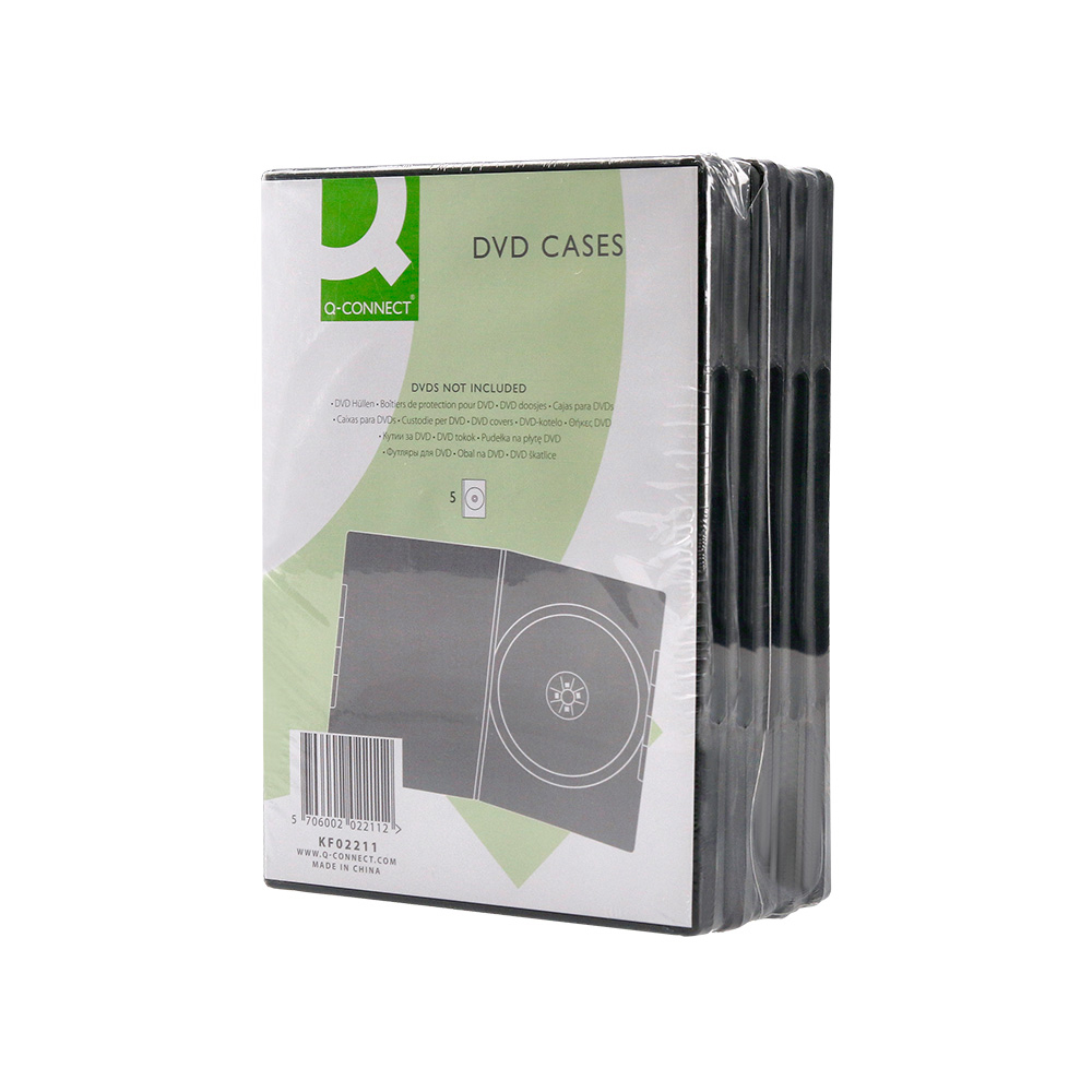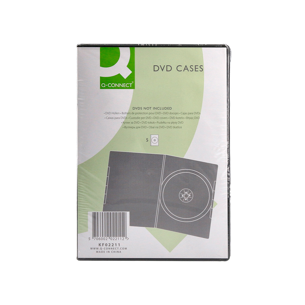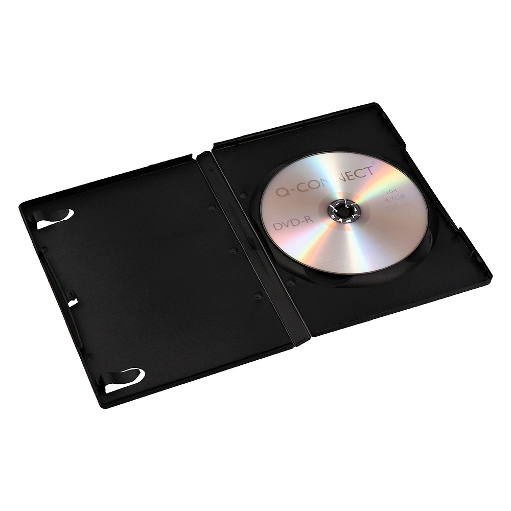 COMMERCIAL INFORMATION:Q-Connect DVD Box. Replacement DVD storage boxes manufactured from hard wearing plastic keeping discs protected and dust free. Holds one DVD and booklet. Has a foil insert at the front to mark the content. Colour - Black.